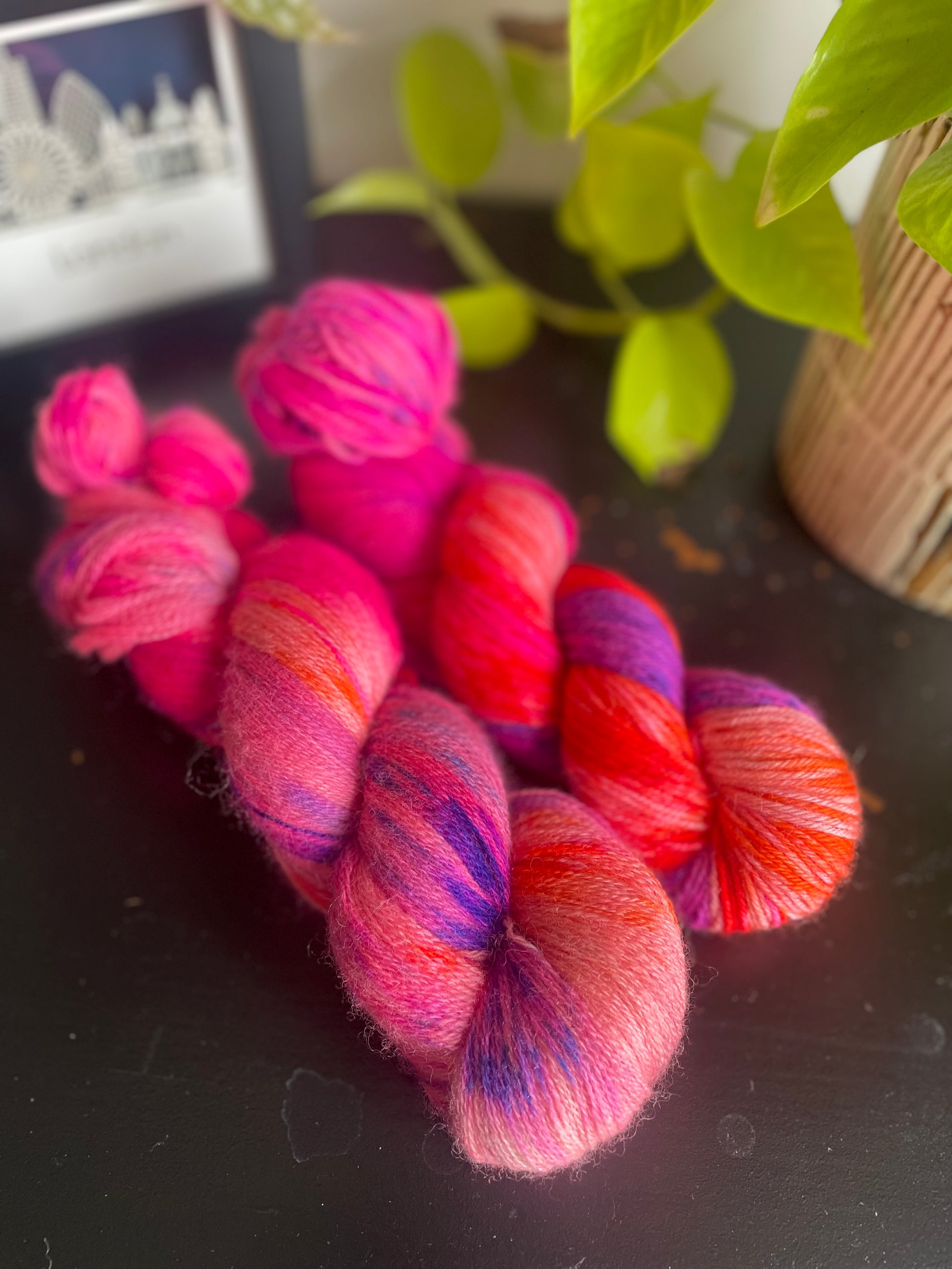 Skeins are photographed in natural light and we try to represent the true colours as much as we can. Please be advised that photography may differ slightly than what you will see 'in person', and may also be different depending on your screen brightness and resolution.