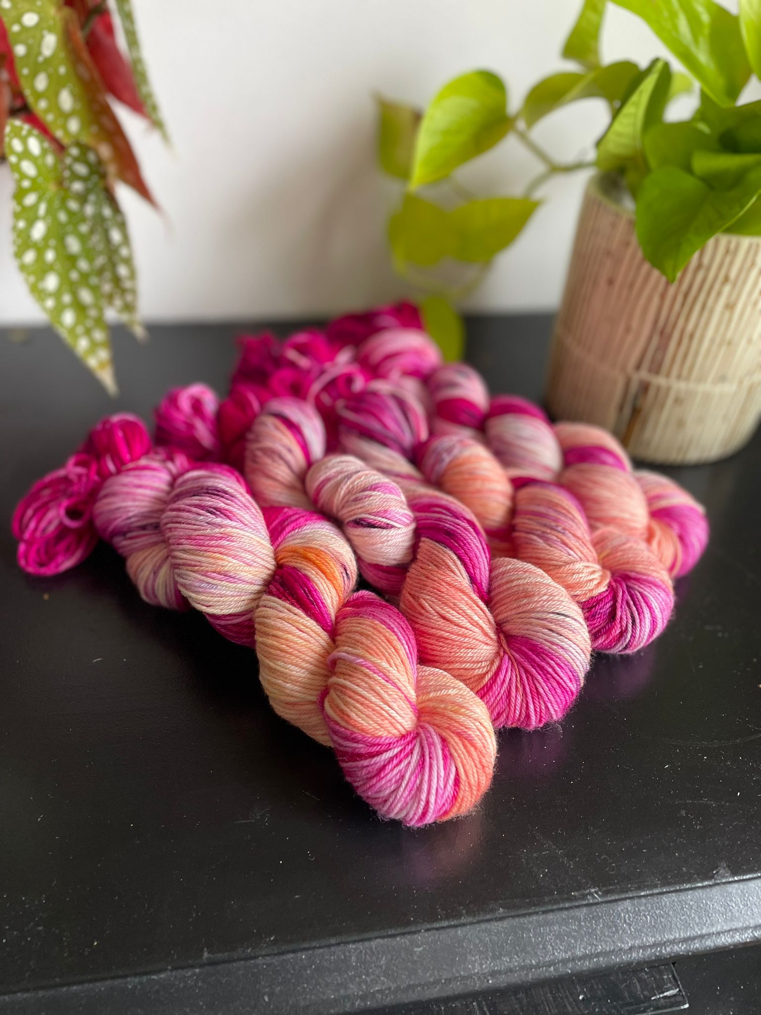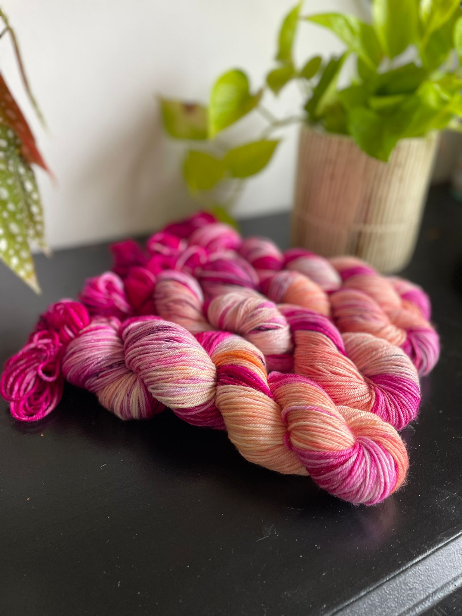Skeins are photographed in natural light and we try to represent the true colours as much as we can. Please be advised that photography may differ slightly than what you will see 'in person', and may also be different depending on your screen brightness and resolution.